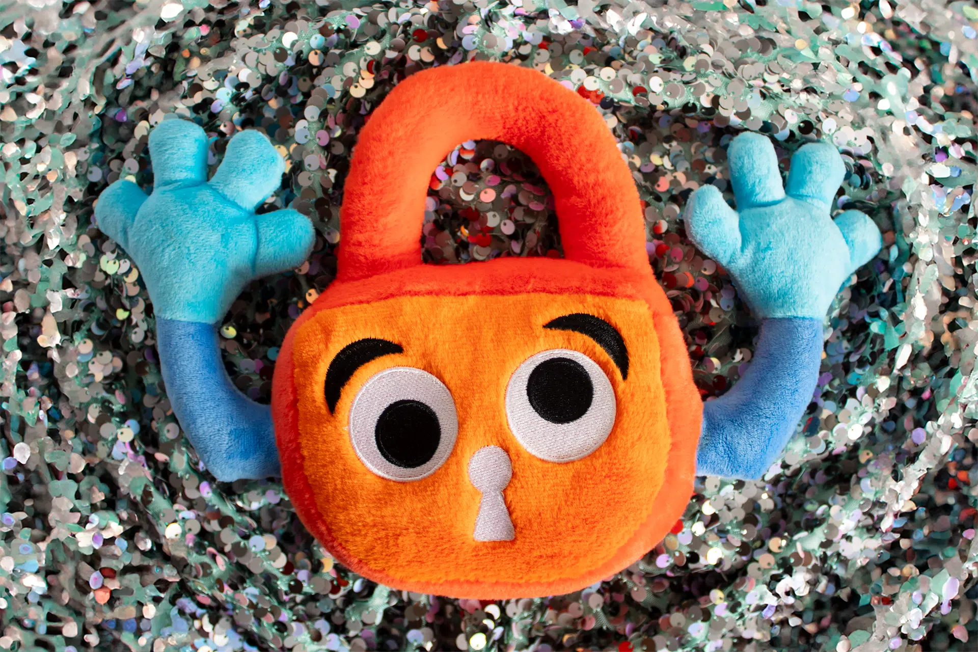 Looking for a soft and squishy pal to squeeze? May we suggest the super adorable Paddy The Padlock? In her playful orange and blue color palette, Paddy makes a cheery companion! Her arms are always spread out wide and ready to hug, the only question is, will you hug her back?