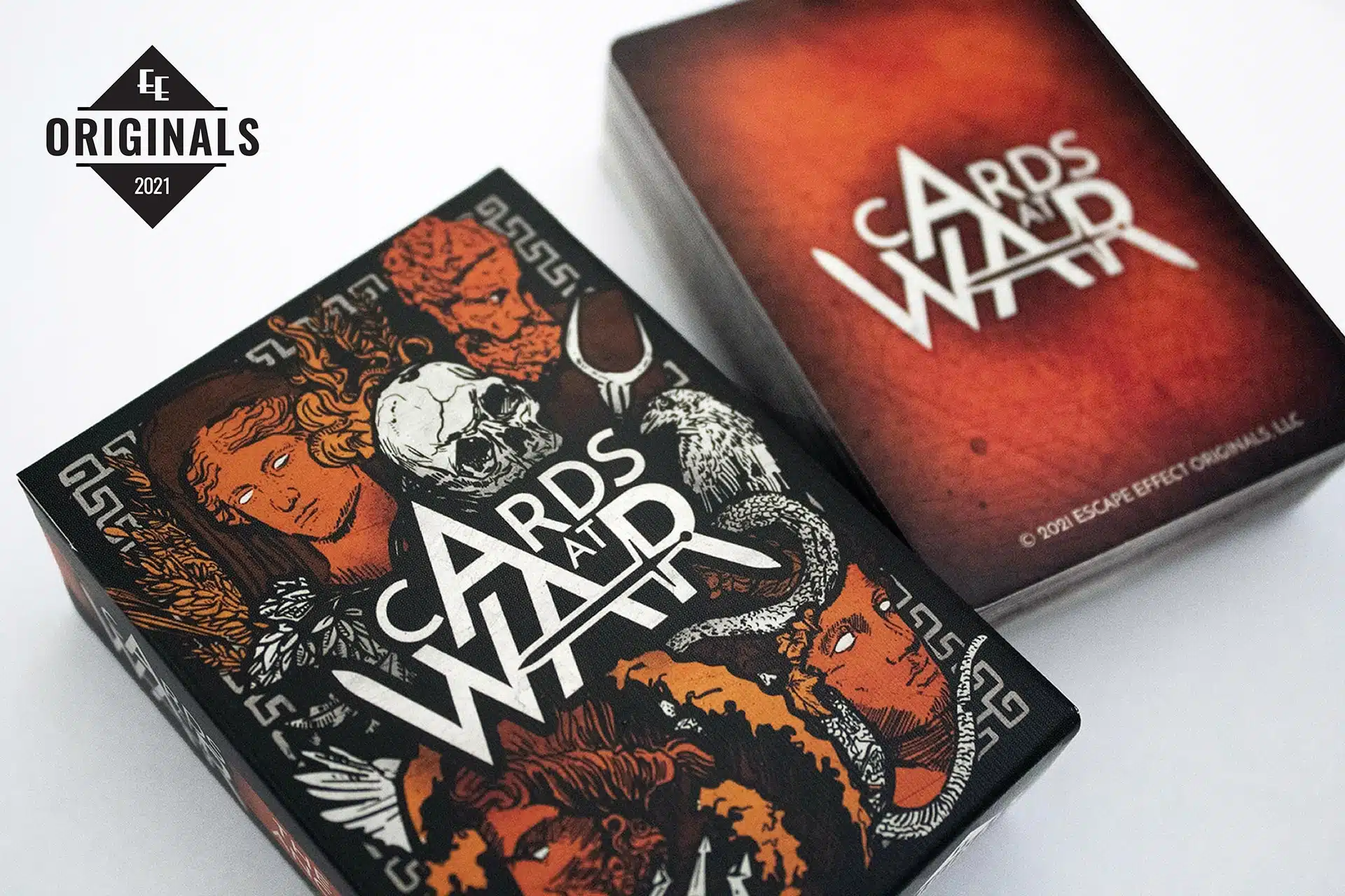 Cards At War is a card game designed by The Escape Effect. Inspired by the classic game, War, and our escape room At Odds With The Gods, this game features the powers of the Greek gods. But that’s not all, there is even a bonus puzzle hunt you can work through together.